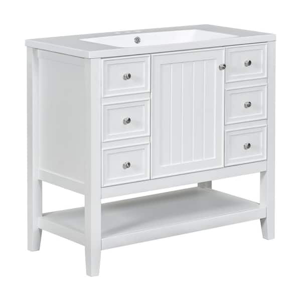 36 in. W 3 Drawers Freestanding White Bath Vanity with White Ceramic Top Unassembled