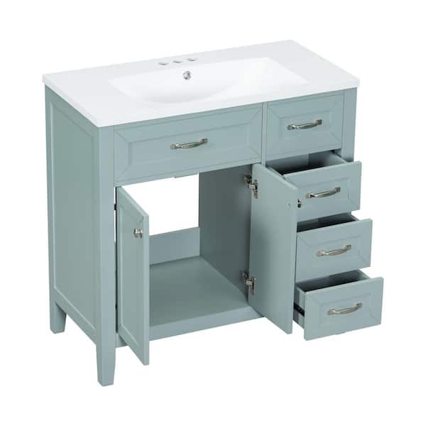 36 in. W Single Sink Freestanding Green Bath Vanity with White Ceramic Top Unassembled