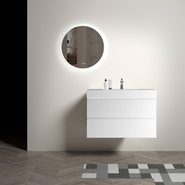 36 in. W x 18.1 in. D x 25.2 in. H Single Sink Floating Bath Vanity in White Bathroom Carbinet with Solid Surface Top
