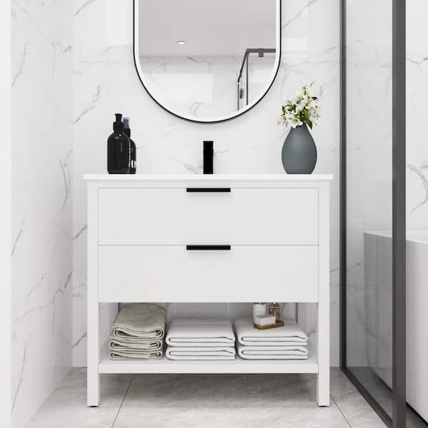 36 in. W x 18.3 in. D x 33.5 in. H Single Sink Freestanding Bath Vanity in White with White Resin Top