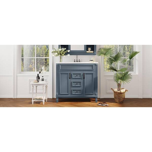 36in. W x 18.10in. D x 34in. H Single Sink Bath Vanity Bathroom Vanity in Blue with White Resin Top, 2 Doors, 2 Drawers