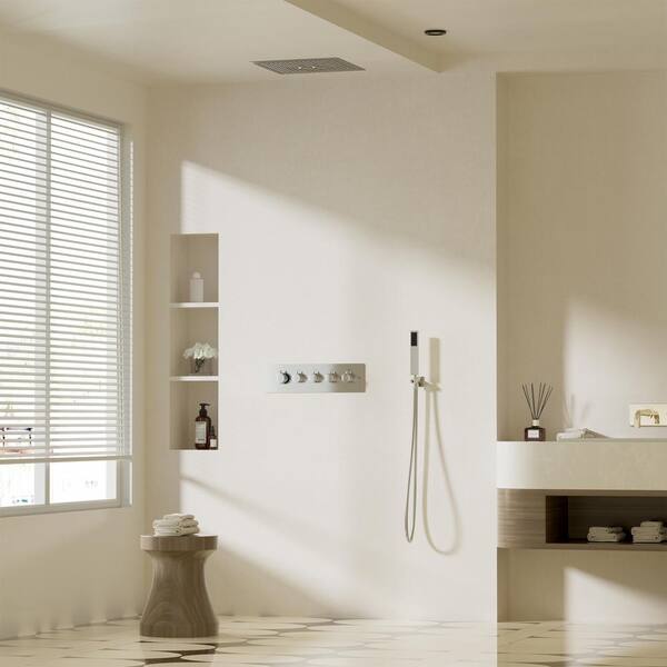 4-Spray 16 in. Dual Shower Heads Ceiling Mount Fixed and Handheld Shower Head 64 Color Lights 2.5 GPM in Brushed Nickel
