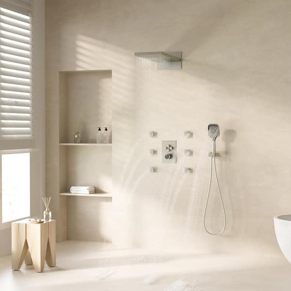 4-Spray 22 in. Rectangular Wall Mounted Dual Shower Head and Handheld Shower Head 2.5 GPM in Brushed Nickel