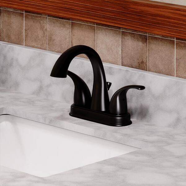 4 in. Center Set Double Handle Bathroom Faucet with Pop-up Drain in Matte Black