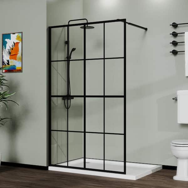 46 in. W x 72 in. H Fixed Framed Shower Door in Black with Clear Glass