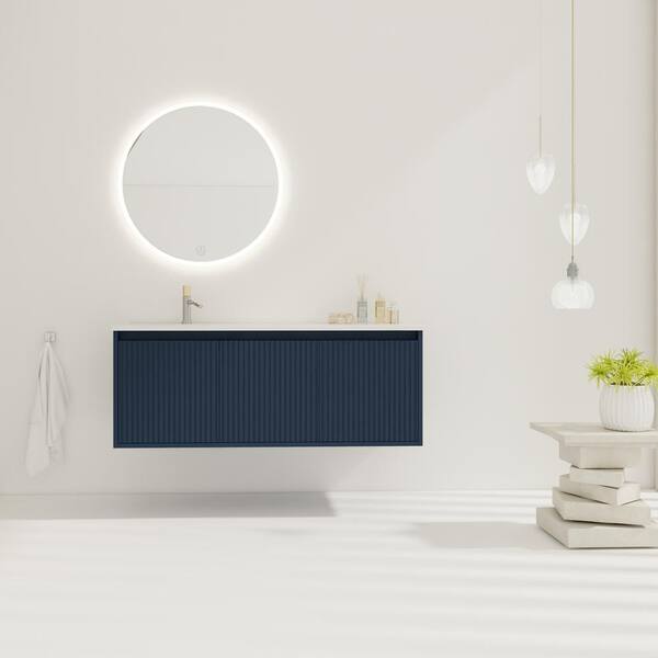 47.6 in. W x 18.2 in. D x 18.2 in. H Floating Bath Vanity with Drop-Shaped White Resin Top in Navy Blue