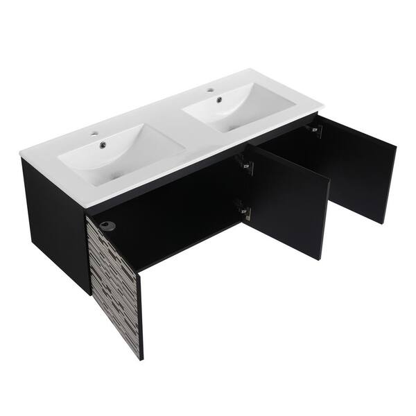 48 in. W x 18.30 in. D x 17.30 in. H Dual Sink Wall-Mounted Bath Vanity in Black White with White Ceramic Sink