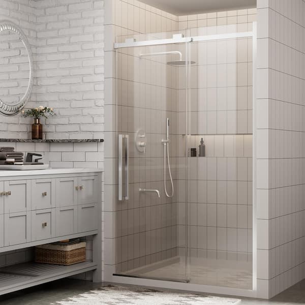48in. W x 76in. H Sliding Frameless Shower Door in Chrome with Clear 10mm Thickness Tempered Glass