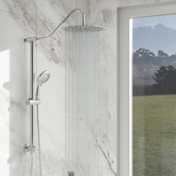 5-Spray 10 in. Dual Wall Mount Fixed and Handheld Shower Head 1.8 GPM with Adjustable Slide Bar in Chrome