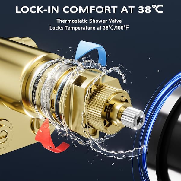 5 Spray 2.5 GPM Shower Faucet Thermostatic Shower System with 64 Color LED, Slide Bar, Digital Temp Display in Black