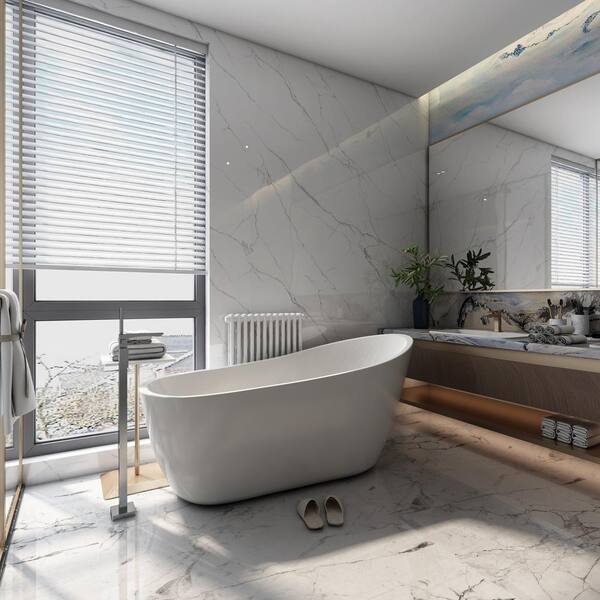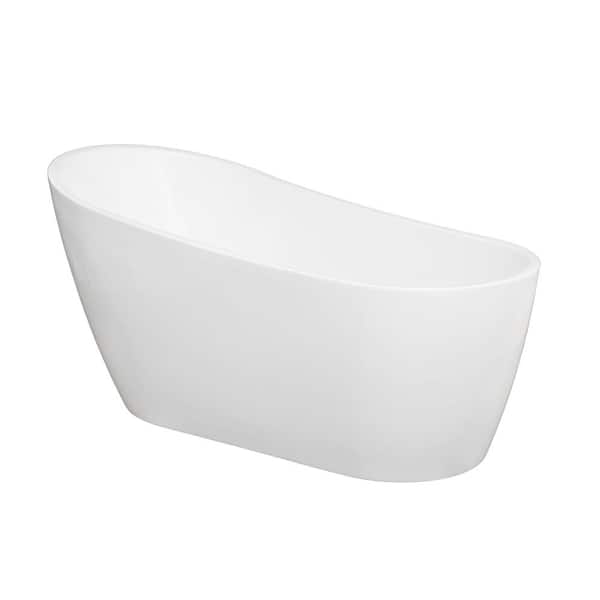 55 in. Acrylic Alcove Flatbottom Freestanding Soaking Non-Whirlpool Bathtub in White