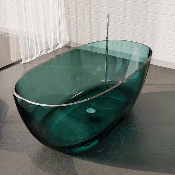 59 in. x 29.5 in. Resin Translucent Freestanding Soaking Bathtub with Center Drain and Hose in Turquoise