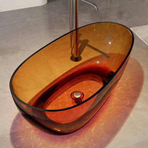59 in. x 30.7 in. Composite Flatbottom Freestanding Soaking Bathtub Solid Surface with Drain Cover in Caramel