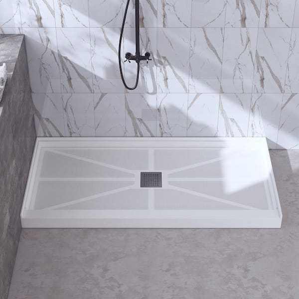 60 in. L x 30 in. W Alcove Shower Pan Base with Center Drain