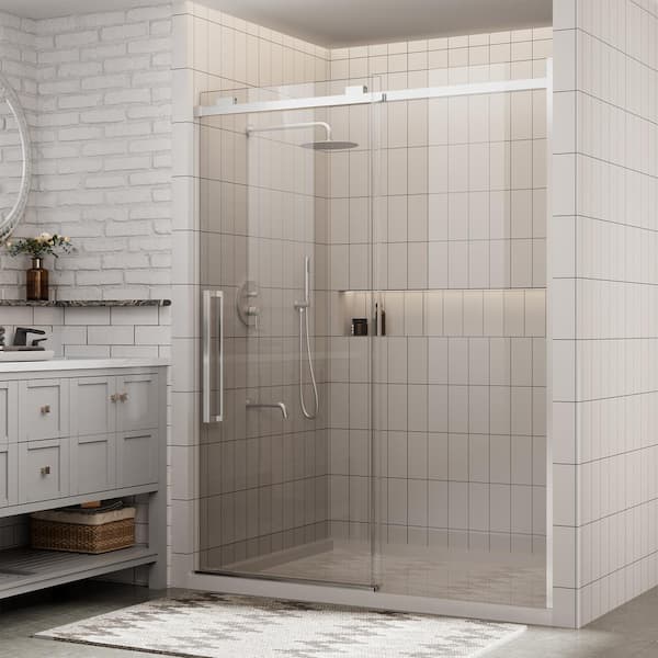 60 in. W x 76 in. H Bathroom Sliding Frameless Shower Door in Chrome with 3/8 in. (10 mm) Thickness Tempered Clear Glass