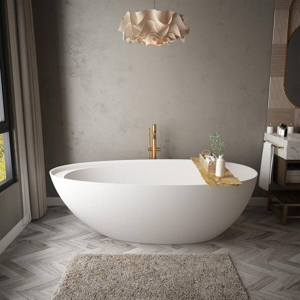 61 in. x 33 in. Solid Surface Freestanding Soaking Bathtub in Matte White with Right Drain and Abrasive Pads