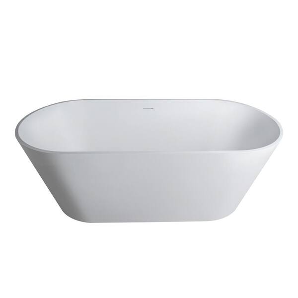 63 in. x 29.5 in. Stone Resin Solid Surface Soaking Bathtub Heat-resistant Tub with Center Drain in Matte White