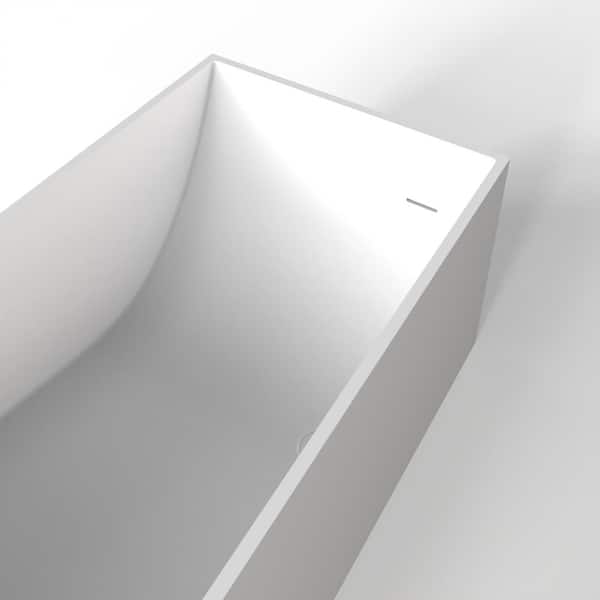 66.9 in. x 28.3 in. Freestanding Solid Surface Soaking Bathtub Rectangular Tub with Left Drain in Matte White
