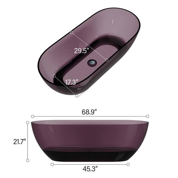 69 in. x 29.5 in. Resin Translucent Freestanding Oval Soaking Bathtub Straight Top with Center Drain in Purple