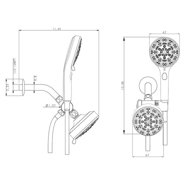 8-Spray Settings Wall Mount Handheld Shower Head 1.8 GPM Shower System 4. 7 in. Dual Shower Heads in Matte Black