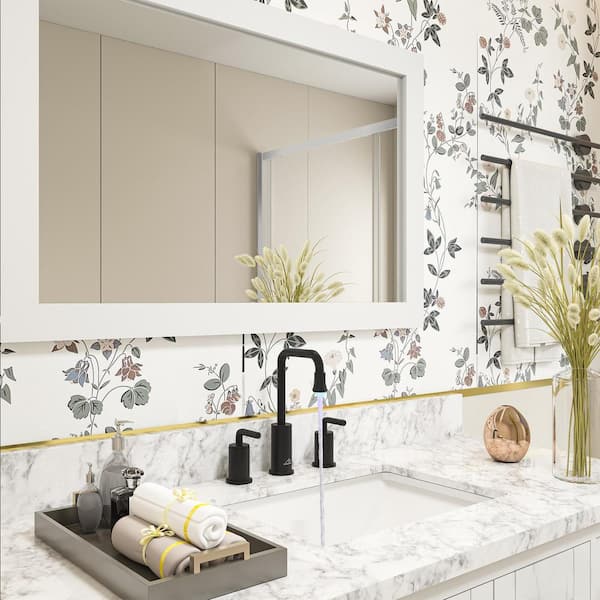 Double Handle 8 in. Widespread Bathroom Sink Faucet with Temperature-sensing LED light and Deckplate in Matte Black