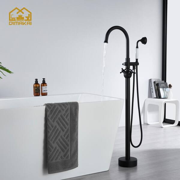 Freestanding 2-Handle Bathtub Faucet with Hand Shower in Matte Black