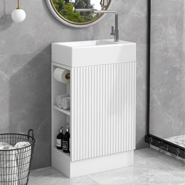 Modern 18.6 in. W x 10.6 in. D x 33.2 in. H Single Sink Freestanding White Bath Vanity in MDF Board with Ceramic Top