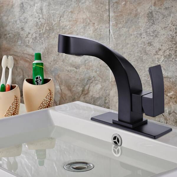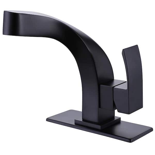Modern Single Handle Single Hole Bathroom Faucet with Deckplate in Matte Black