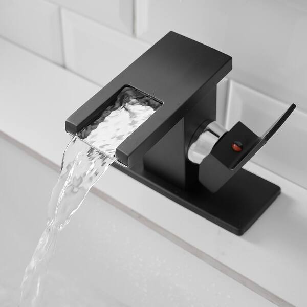 Single Handle Single Hole Bathroom Faucet with Deck Plate Included and LED Temperature Sensor Light in Matte Black