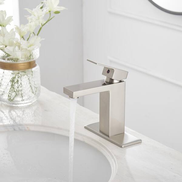 Single Hole Single-Handle Low-Arc Bathroom Faucet With Pop-up Drain Assembly in Brushed Nickel