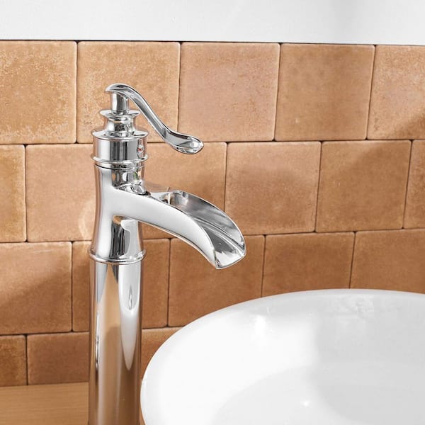 Waterfall Single Hole Single Handle Bathroom Vessel Sink Faucet With Pop-up Drain Assembly in Polished Chrome