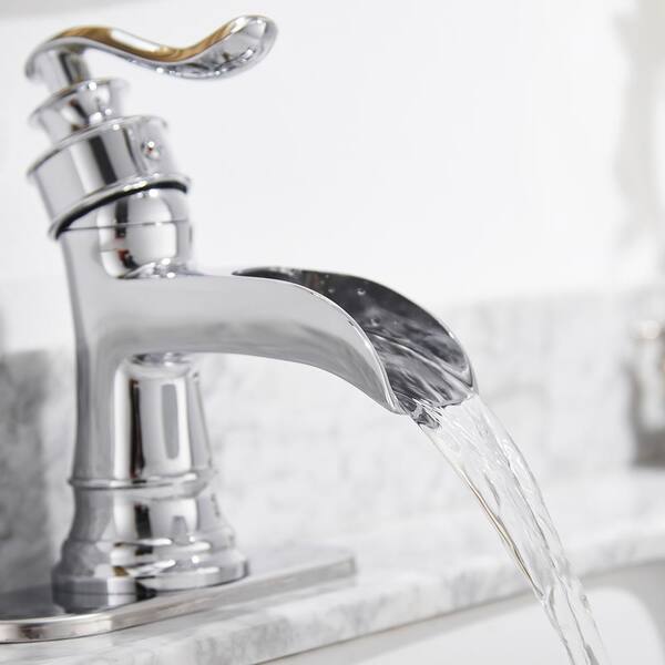 Waterfall Single Hole Single-Handle Low-Arc Bathroom Faucet With Pop-up Drain Assembly in Polished Chrome