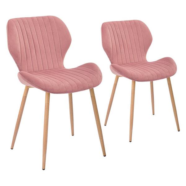 Dining Chairs Mid Century Modern Leisure Upholstered Metal Legs for Kitchen Living Room, Set of 2, Pink