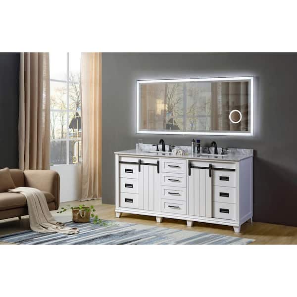 72 in. W x 25 in. D x 34 in. H Double Sink Freestanding Bath Vanity in White with White Carrara Marble Top and Mirror
