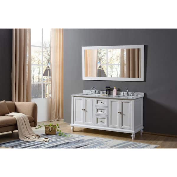Classic 60 in. W x 23 in. D x 32 in. H Bath Vanity in White with White Carrara Marble Top with White Basins