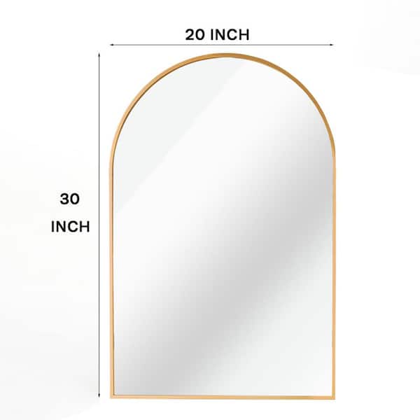 20 in. W x 30 in. H Arched Mirror for Bathroom Entryway Wall Decor Metal Frame Wall Mounted Mirror in Gold