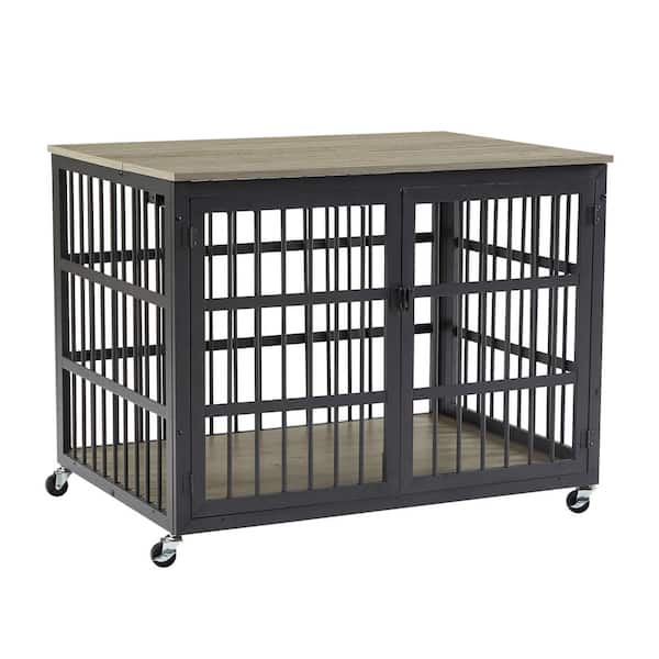 Dog Crate Wrought Iron Frame Door with Side Openings, Grey- Medium