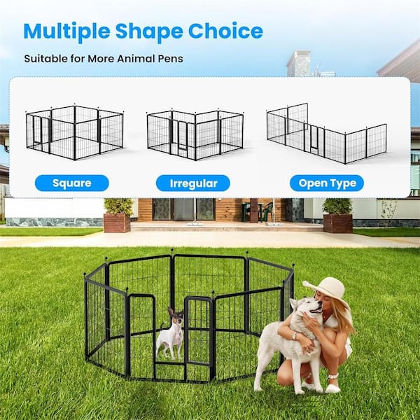 Dog Playpen, 24 in. H 8 Panels Fence Indoor Outdoor Heavy-Duty Metal Foldable Dog Kennel Dog Pen with Anti-Rust Coating