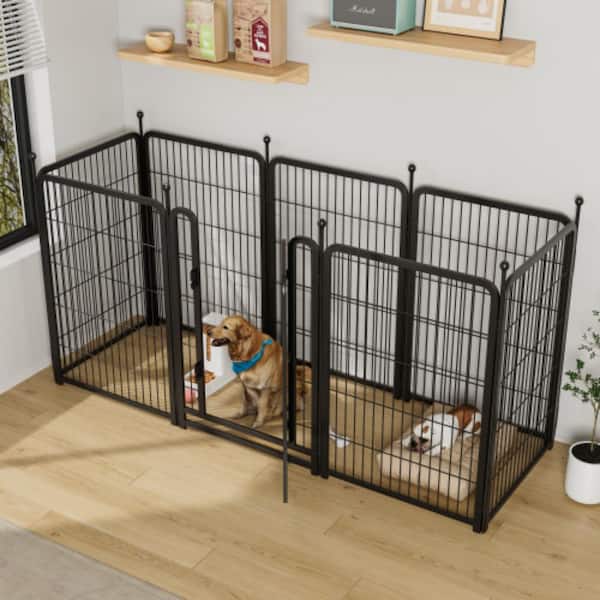 Dog Playpen 8-Piece Set 40 in. High Suitable for Large, Medium and Small Dogs Indoor and Outdoor Foldable Black,Steel