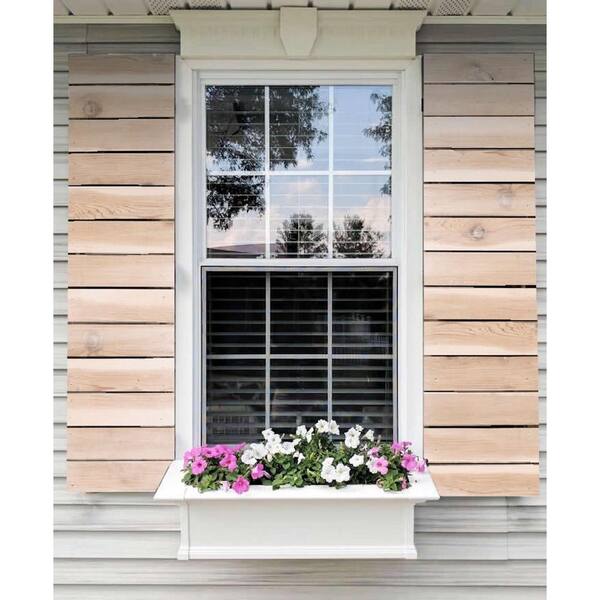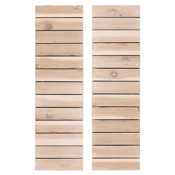 14 in. x 84 in. Wood Horizontal Slat Whitewash Board and Batten Shutters Pair