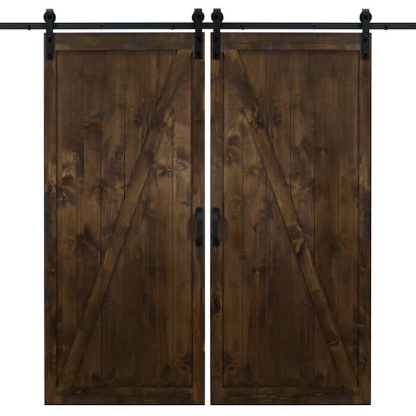 36 in. x 84 in. Classic Z Dark Chocolate Double Sliding Barn Door with Hardware Kit