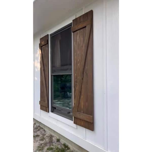 14 in. x 42 in. Z Wood Board and Batten Shutters Pair in Coffee Brown