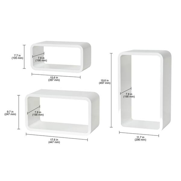 LONGCUBE 19.6 in. x 11.7 in. x 7.8 in. White MDF Floating Decorative Wall Shelf with Brackets (3pk)