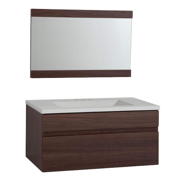 Firenze 30 in. W Bathroom Vanity in Dark Walnut with Vanity Top in Alpine White and Wall Mirror