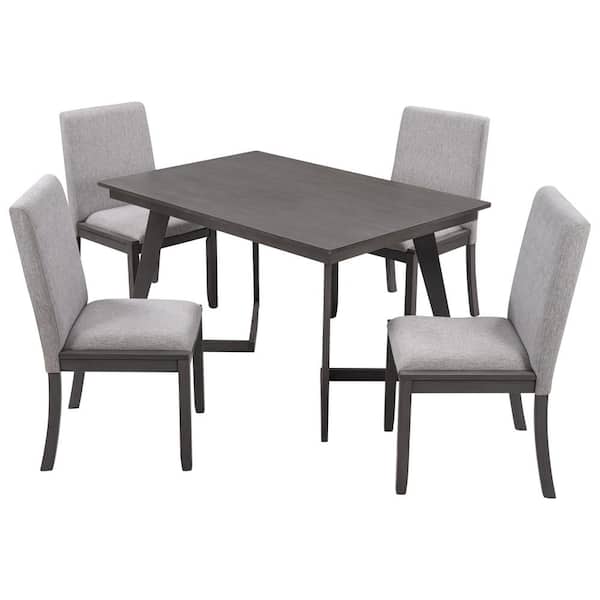 5-Piece Rectangular Wood Top Gray Dining Table Set