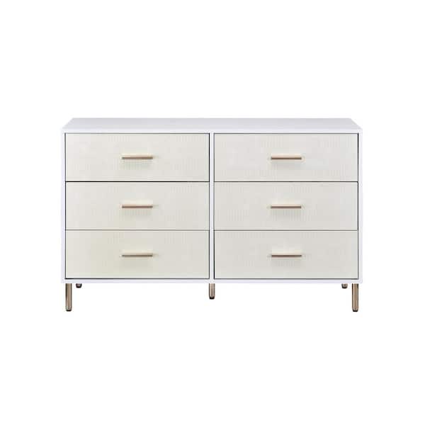 6-Drawer White & Champagne Dresser(47"L x 16"W x 29"H)