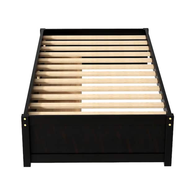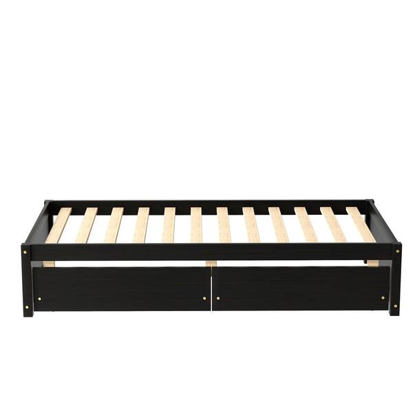 Brown Wood Frame Twin Platform Bed with 2-Drawers