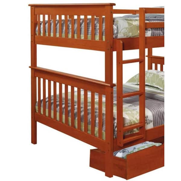 Brown Light Espresso Full Over Full Mission Bunk Bed with Dual Under Bed Drawers