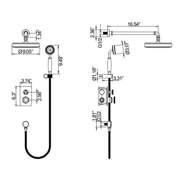 Double-Handle 1-Spray Shower Faucet 1.8 GPM with Ceramic Disc Valves Rain Shower System with Hand Shower in Brushed Gold