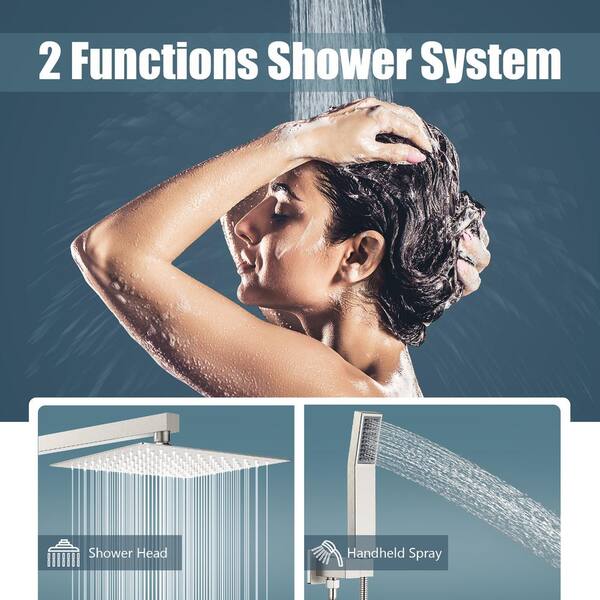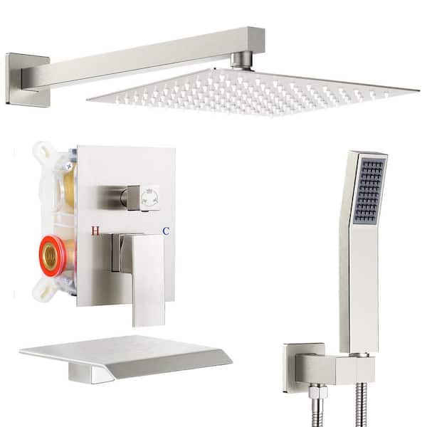 Double Handle 3-Spray Tub and Shower Faucet Shower Combo 10 in. Shower Head 2.5 GPM in. Brushed Nickel Valve Included